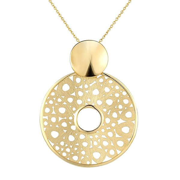 Collier, löchrige Scheibe, eismatt, poliert, gelbvergoldet