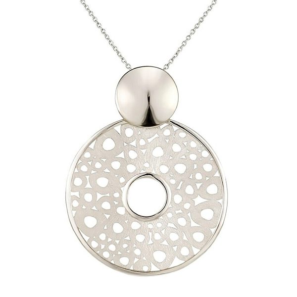 Collier, löchrige Scheibe, eismatt, poliert, rhodiniert